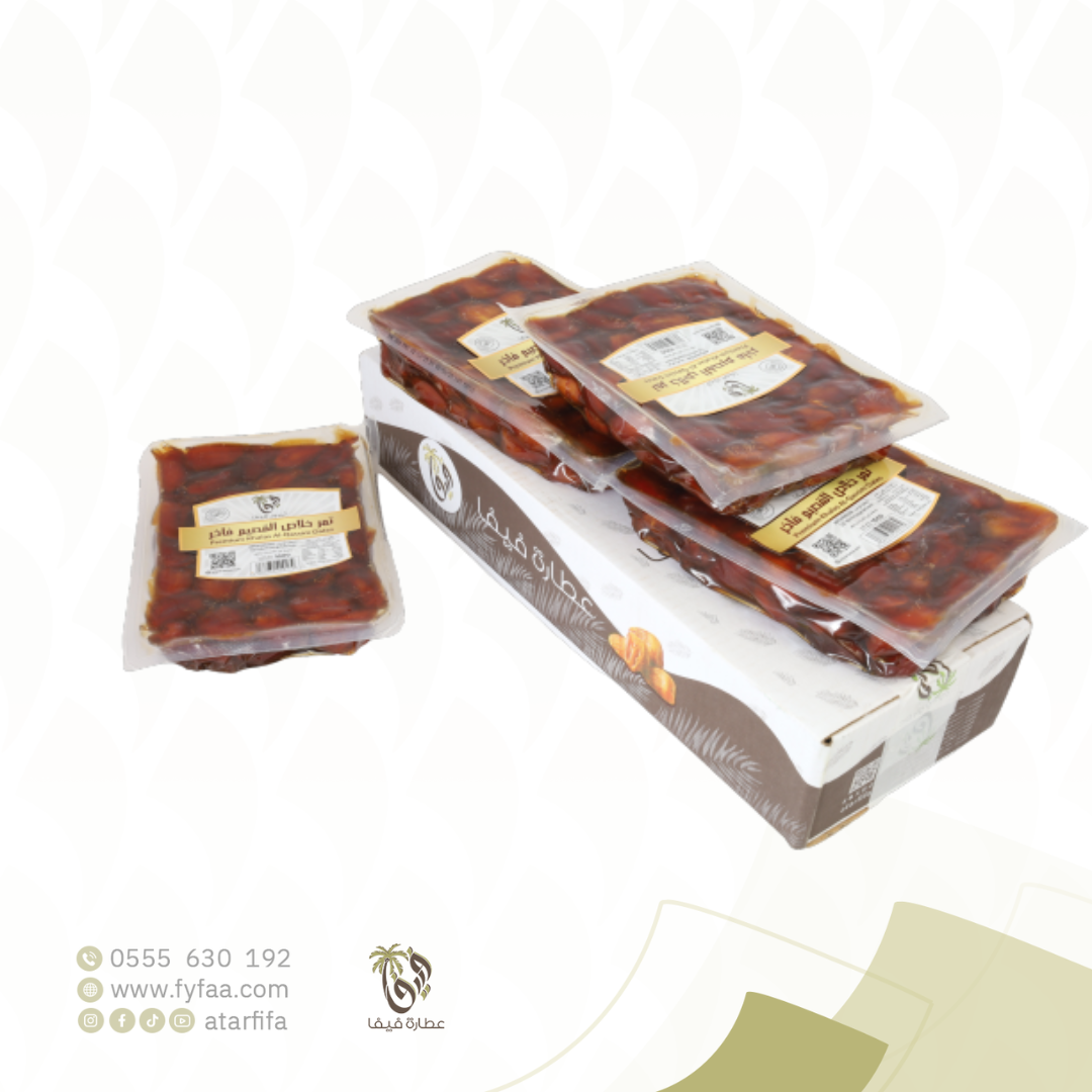 تمر خلاص القصيم فيفا 1كيلو كرتون هو تمر فاخر يتميز بجودته العالية وطعمه الحلو المتوازن وقوامه الطري. يُعد من أشهر وأجود أنواع التمور في المملكة، مناسب للاستخدام اليومي أو للتقديم في المناسبات والضيافة.