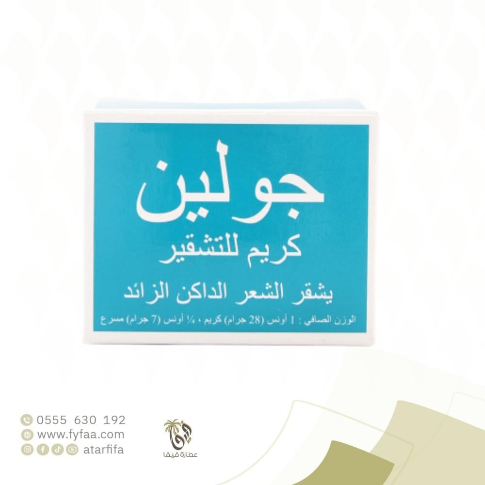 الوصف: جولين كريم للتشقير هو منتج مصمم خصيصاً لتفتيح وتشقير الشعر غير المرغوب فيه، مما يتيح لكِ الحصول على لون شعر أفتح بطريقة آمنة وسهلة. يُعتبر هذا الكريم مثاليًا للتشقير على مناطق مختلفة من الجسم، بما في ذلك الوجه، الذراعين، والساقين.