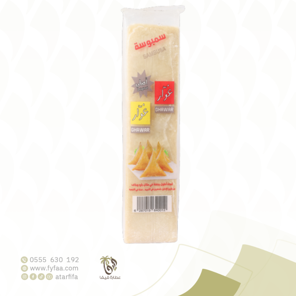 رقاق سمبوسة غوار هو الاختيار الأمثل لتحضير السمبوسة الشهية والمقرمشة. يتميز بجودته العالية ومرونته، مما يسهل حشوه وتشكيله بالطريقة التي تفضلها لتحضير وجباتك اللذيذة.